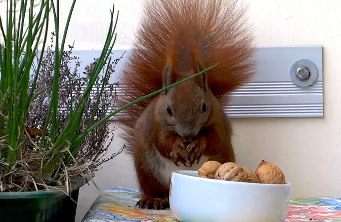 Squirrels are fond of different kinds of nuts and fruits. But the interesting part is they are not choosy. You can almost feed them anything.