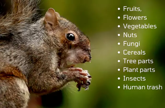 Squirrels are not very demanding, which means they are not picky eaters. They eat in their way. They almost eat every type of fruit and vegetables. They even eat small snakes and insects.